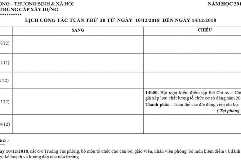 LỊCH CÔNG TÁC TUẦN THỨ 14