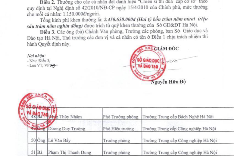 Quyết định công nhận danh hiệu: "Chiến sĩ thi đua cấp cơ sở" năm học 2014-2015