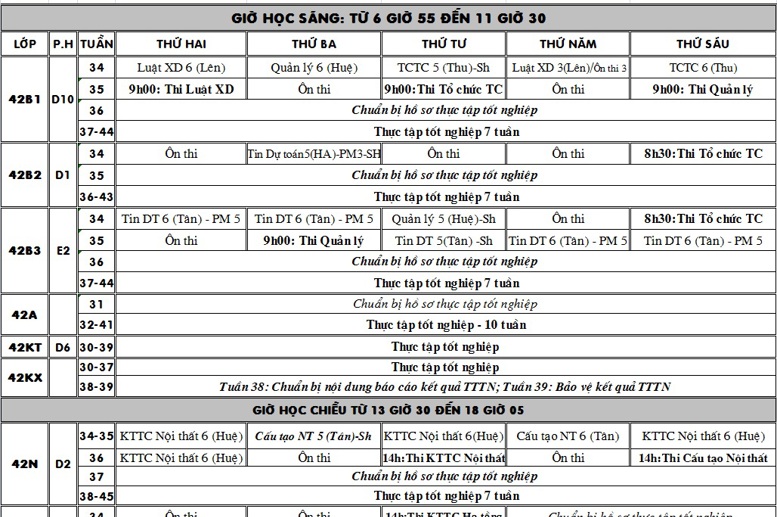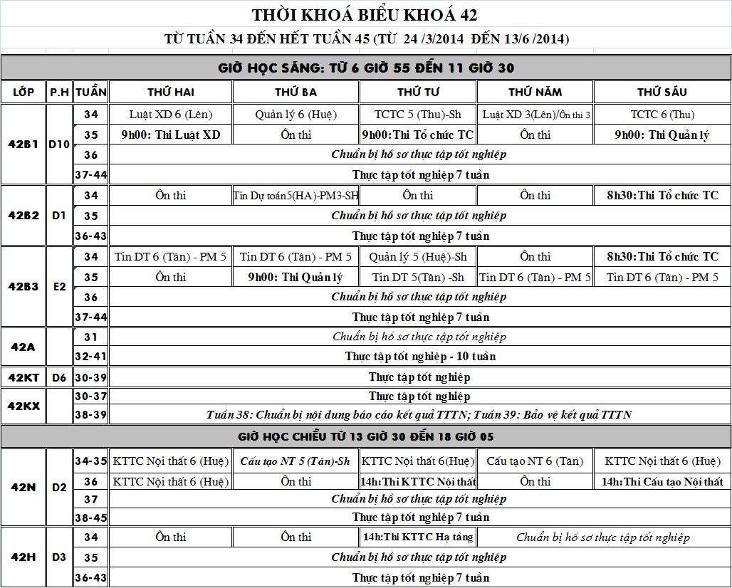 TKB khóa 42 Tuần 34 - 45
