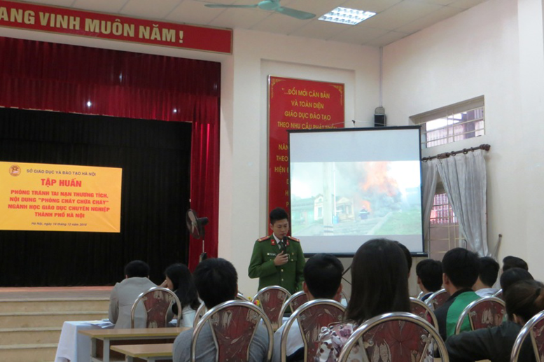 Phát biểu tại buổi tập huấn, bà Nguyễn Thị Diệp Hồng - Phó trưởng phòng GDTX-CN Sở GD&ĐT Hà Nội nhấn mạnh tầm quan trọng của công tác PCCC trong đời sống hiện nay, khi con người luôn phải đối đầu với thảm họa cháy nổ từng ngày, từng giờ. Bên cạnh việc trang bị những thiết bị chữa cháy cơ bản, các trường TCCN hằng năm vẫn cần có những buổi tập huấn công tác PCCC cho cán bộ,giáo viên và học sinh. Việc trang bị những kiến thức, kỹ năng đó là rất cần thiết bởi bất cứ lúc nào, khi có hỏa hoạn xảy ra, ở nhà hay nơi công sở, cơ quan làm việc, chúng ta luôn chủ động và biết cách đối phó, giải cứu chính mình và cứu người khác.