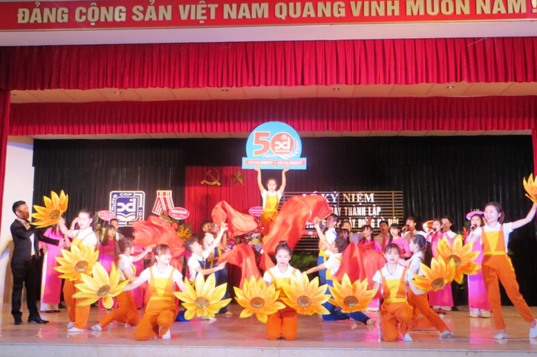 Mở đầu chương trình, Thạc sĩ Nguyễn Tuấn Minh – Bí thư Chi bộ, Hiệu trưởng nhà trường đã đọc diễn văn ôn lại chặng đường nửa thế kỷ xây dựng và phát triển của Trường, đồng thời nhấn mạnh những thành tích đã đạt được trong 50 năm qua.