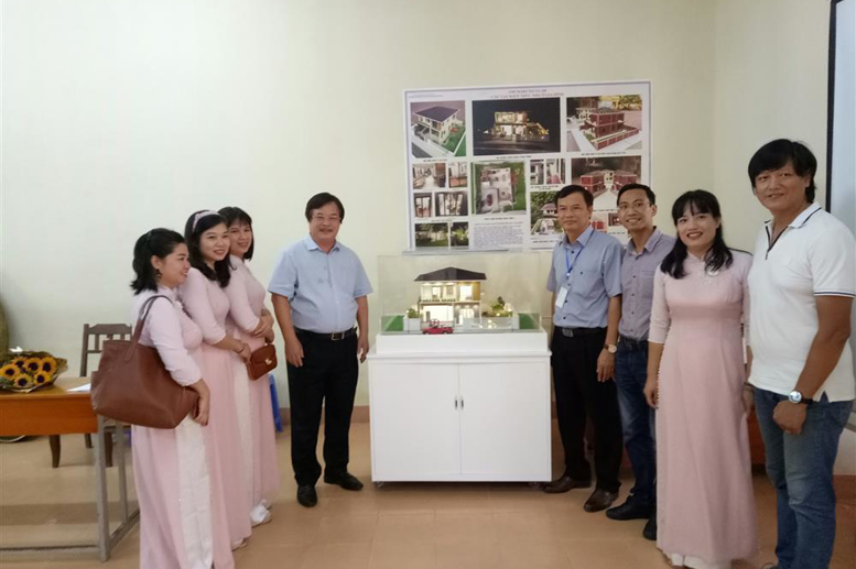 Phần thuyết trình về mô hình" Cấu tạo kiến trúc nhà ở gia đình" của nhóm tác giả trước Ban giám khảo Hội thi