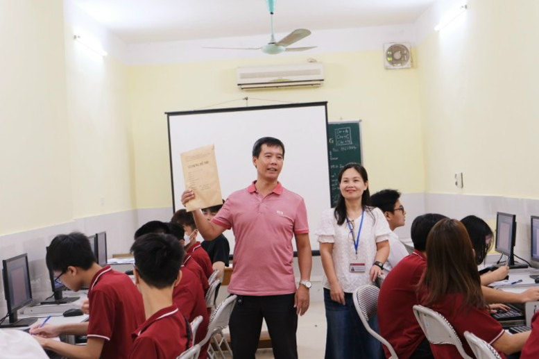 Giáo viên cùng các thí sinh trước giờ dự thi
