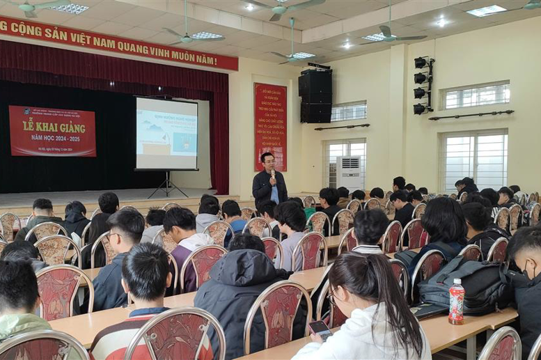 Ngày 30/10, Trường Trung cấp Xây dựng Hà Nội phối hợp Trung tâm dịch vụ việc việc làm Hà Nội tổ chức buổi tọa đàm tư vấn hướng nghiệp cho học sinh toàn trường